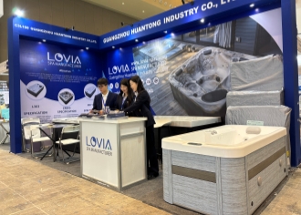 We wrap the spa tub with protective film and foam, then secure it with corner guards and place it on a reinforced pallet for safe transportation.